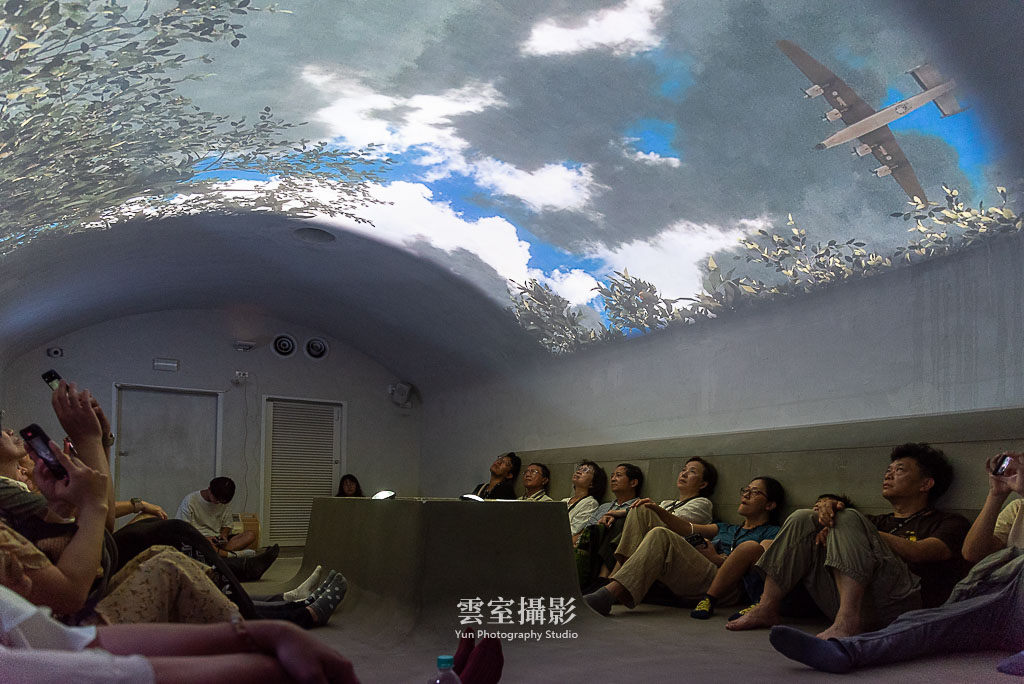 今日的建國眷村仍舊保留過去如豬圈、原為馬廄,後改為類似大雜院的居住處、消防水池、丁棟等生活遺跡,最後來到防空洞,防空洞的再利用別具新意,在體驗前先讓觀眾坐在防空洞內觀看影片,接著分批進入戰時指揮所內,利用時下最夯的VR技術,感受戰時空間的布局及空軍的飛行體驗,相當好玩!